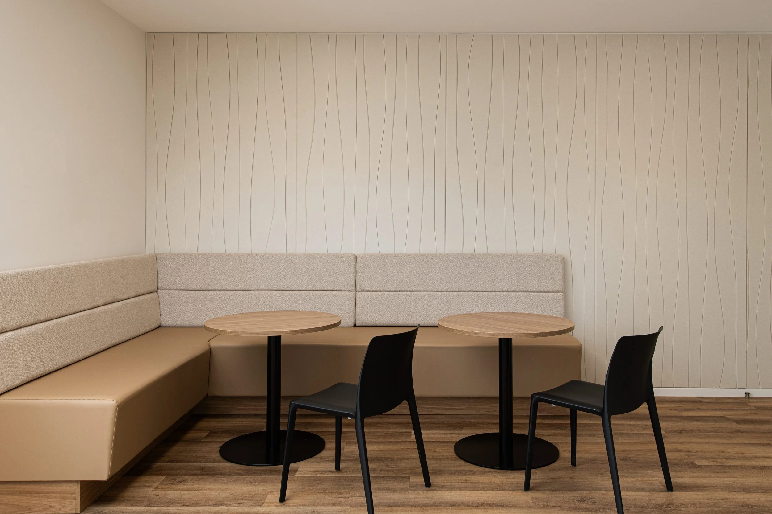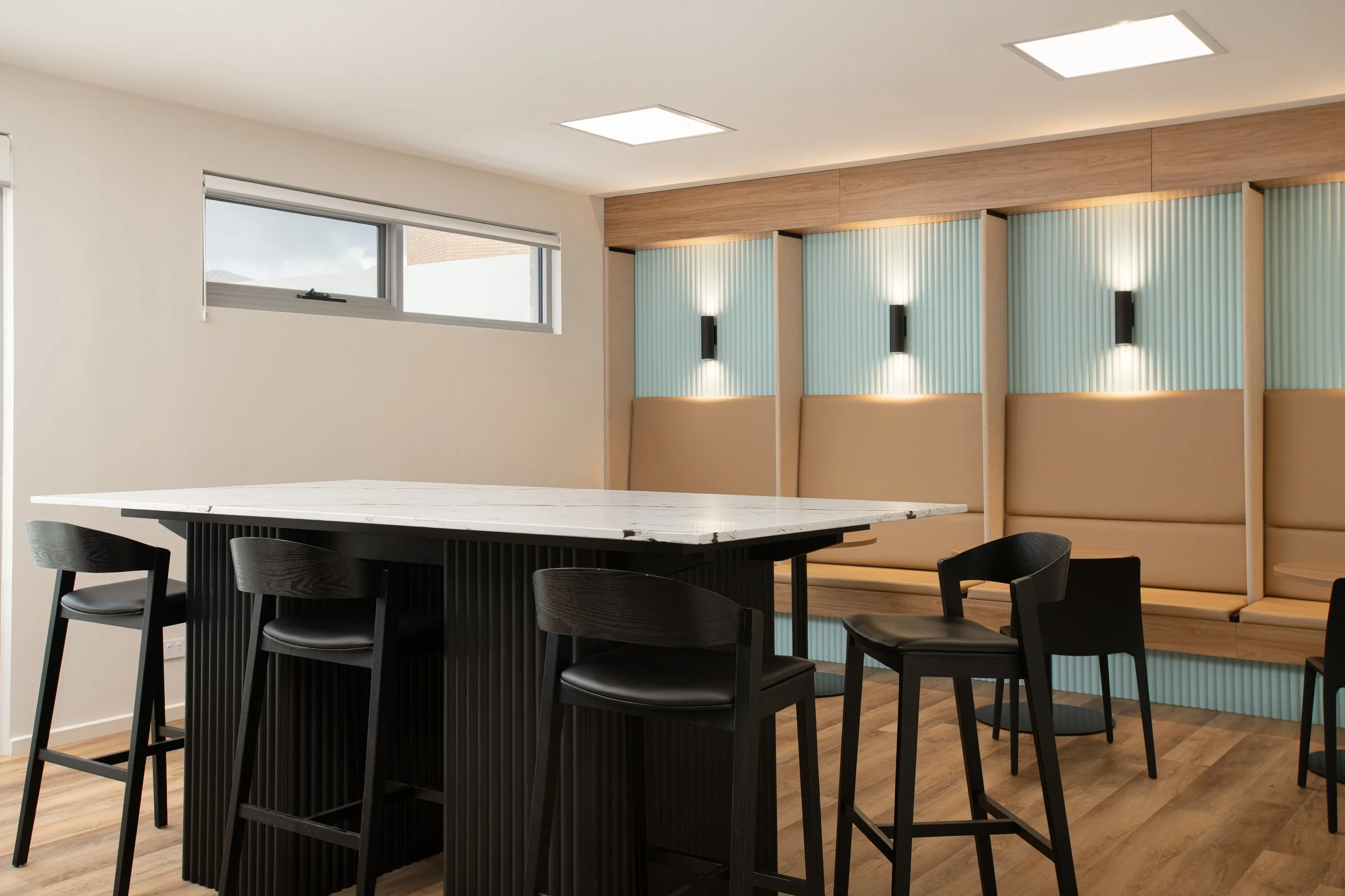 Integrated meeting and wellness zones that enhanced staff connection, focus, and wellbeing.